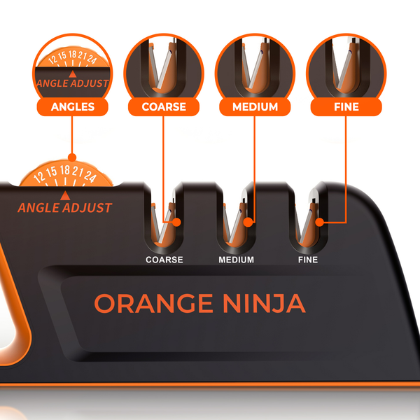 The Orange Ninja is different. Simply dial in the exact factory angle - from a narrow 12° for Japanese knives to a rugged 24° for Hunting blades.