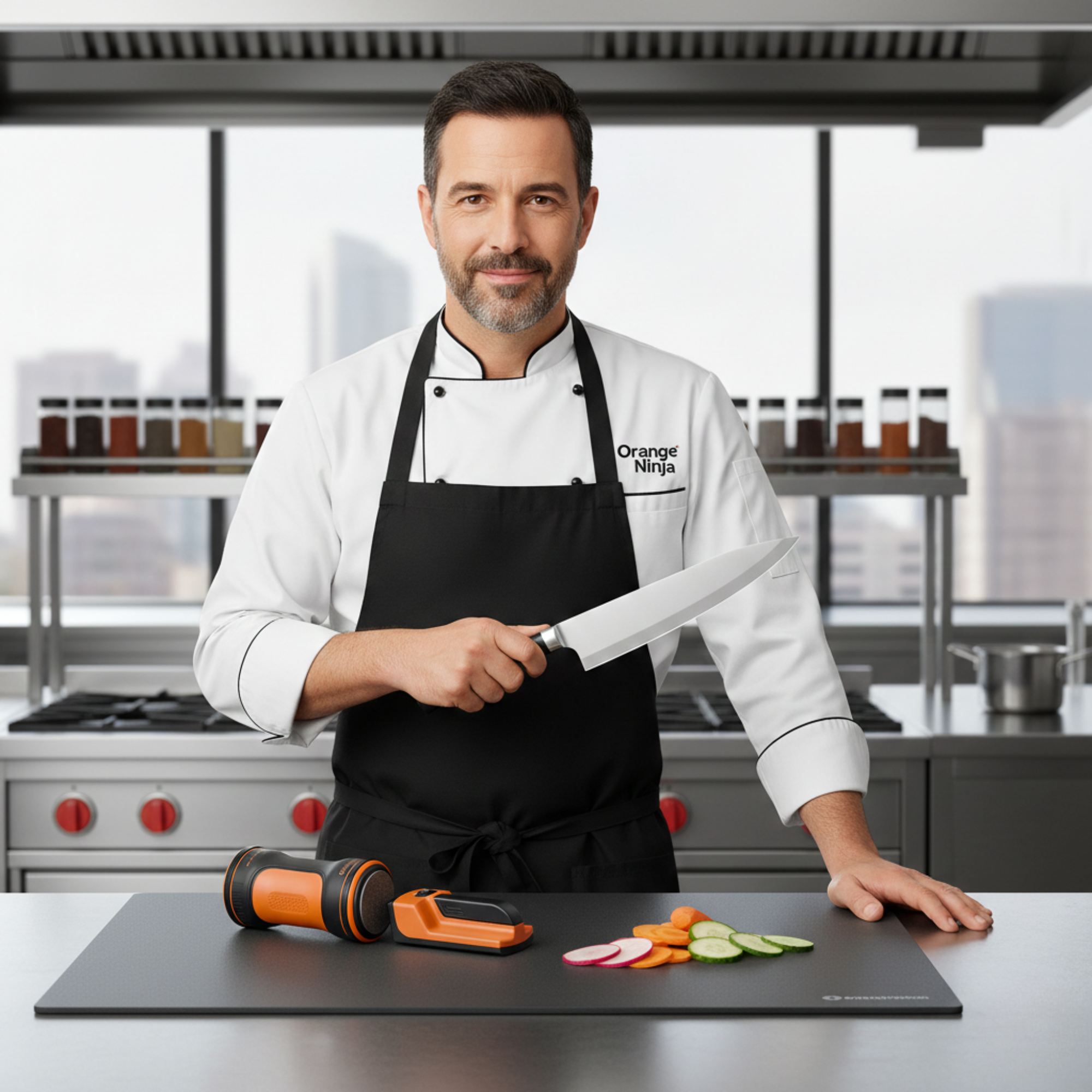 "I used to baby my chefs knife because I was scared of ruining it with cheap sharpeners. The Orange Ninja made it stupid‑simple, set the angle, roll a few times, and it came out slicing tomatoes like a dream. Now I sharpen once a week and actually enjoy it."